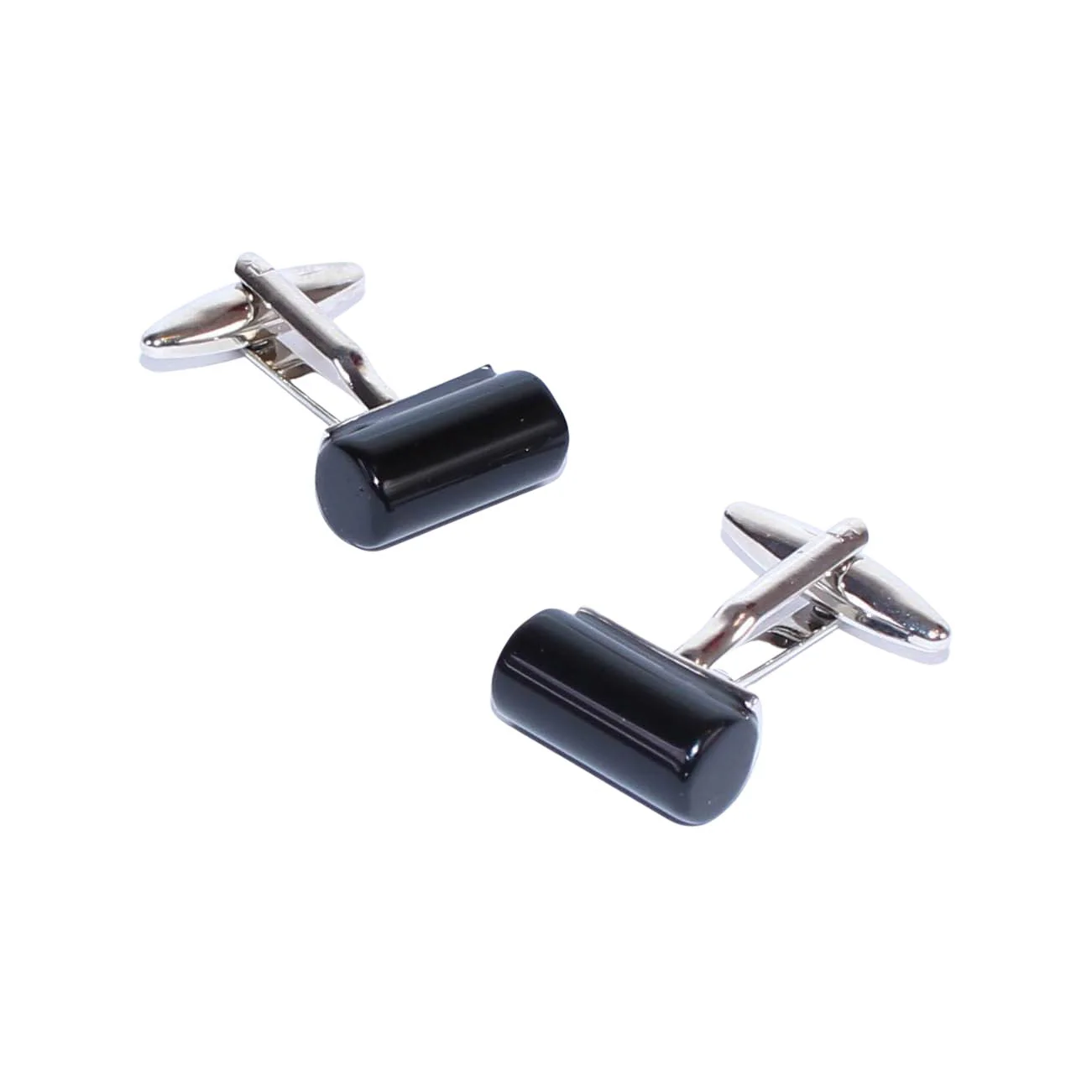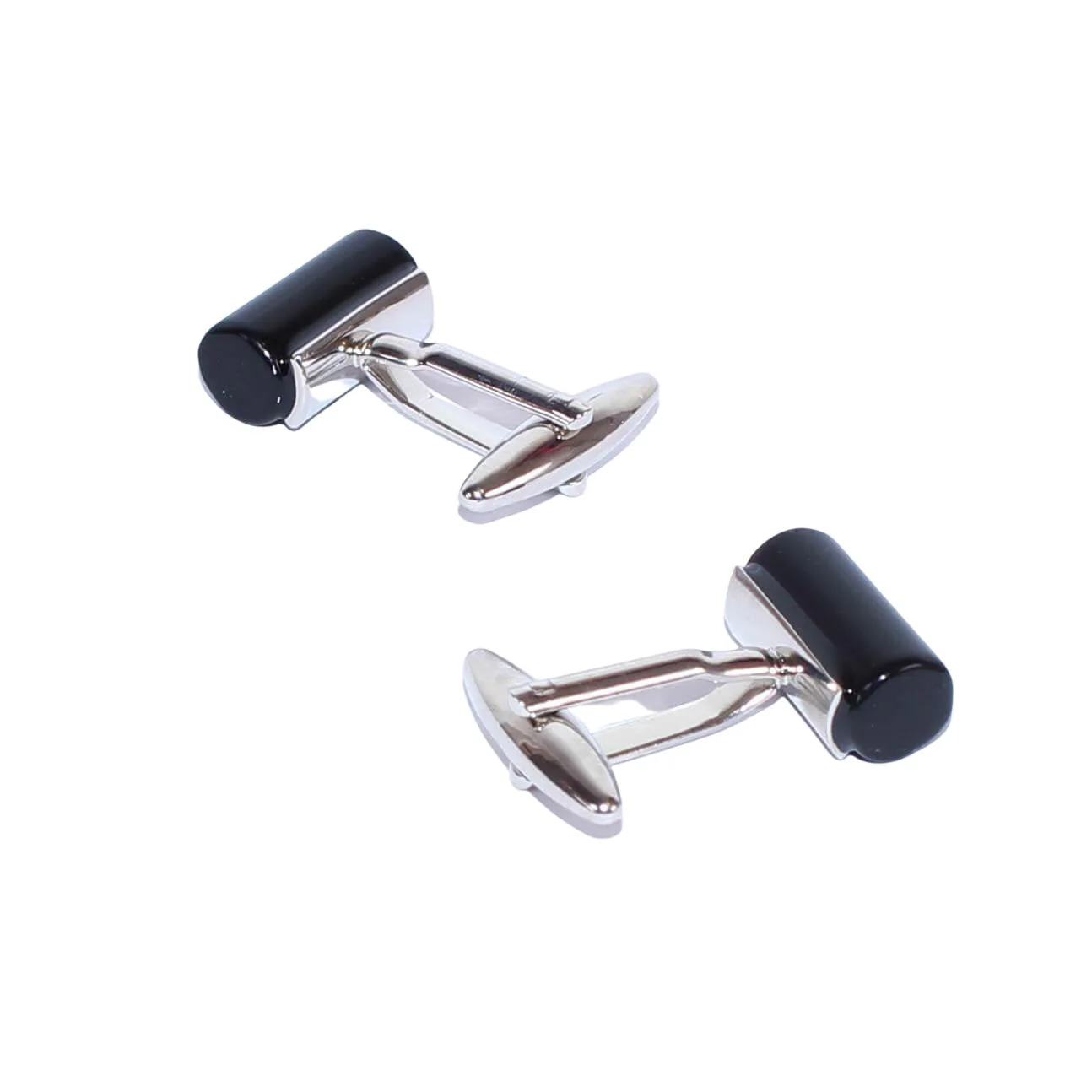 - Boutons de manchette cylindriques, agrémentés d’une pierre noire.