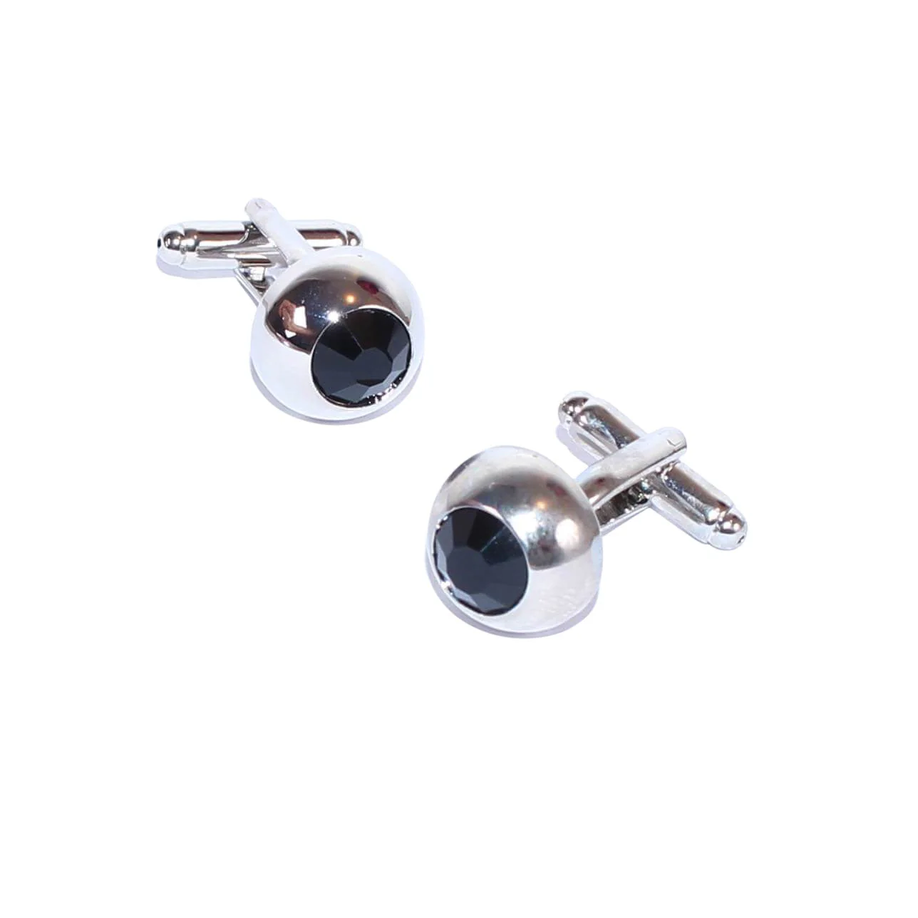 - Boutons de manchette en forme de boule incrustée d’une perle noire.