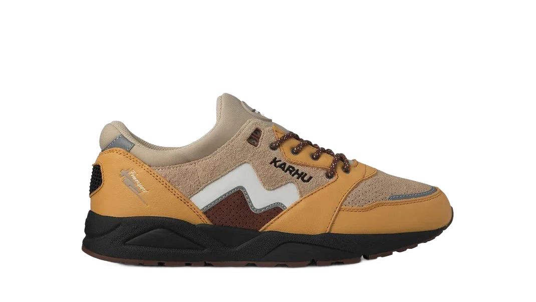 En plus du design rétro inspiré du modèle des années 90, le KARHU Aria 95 dispose également de technologies modernes. Les empiècements en cuir et en daim poilu offrent une sensation de qualité supérieure et douce. La construction innovante à mono-languette garantit un ajustement sûr, semblable à celui d’une chaussette, qui s’adapte parfaitement au pied et offre un confort de première classe. Le modèle présente des éléments de design bien pensés tels qu’une boîte à orteils en daim perforé, un logo Finnsport en relief et imprimé sur le talon, des œillets métalliques, des détails réfléchissants et des lacets ronds pour un look sportif.