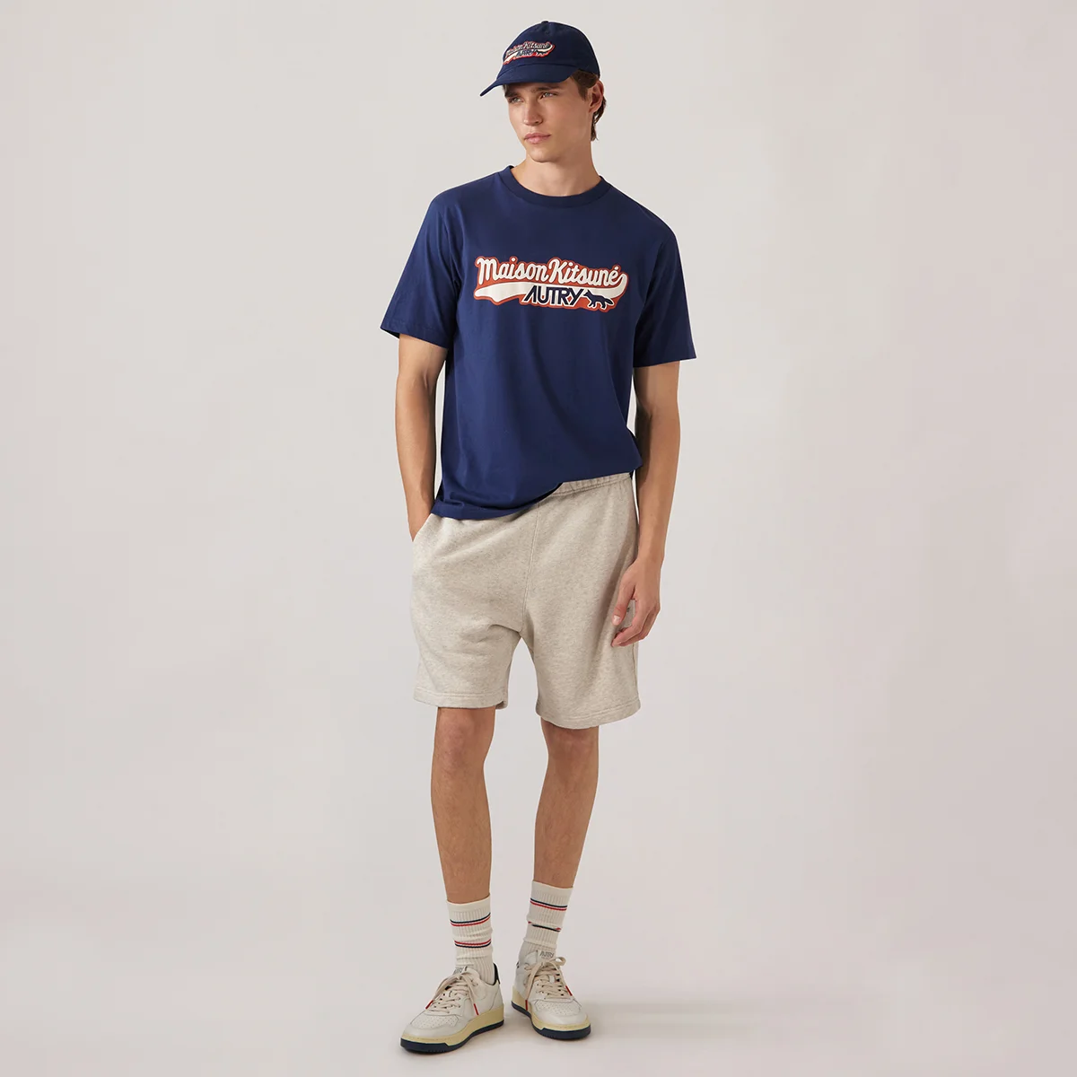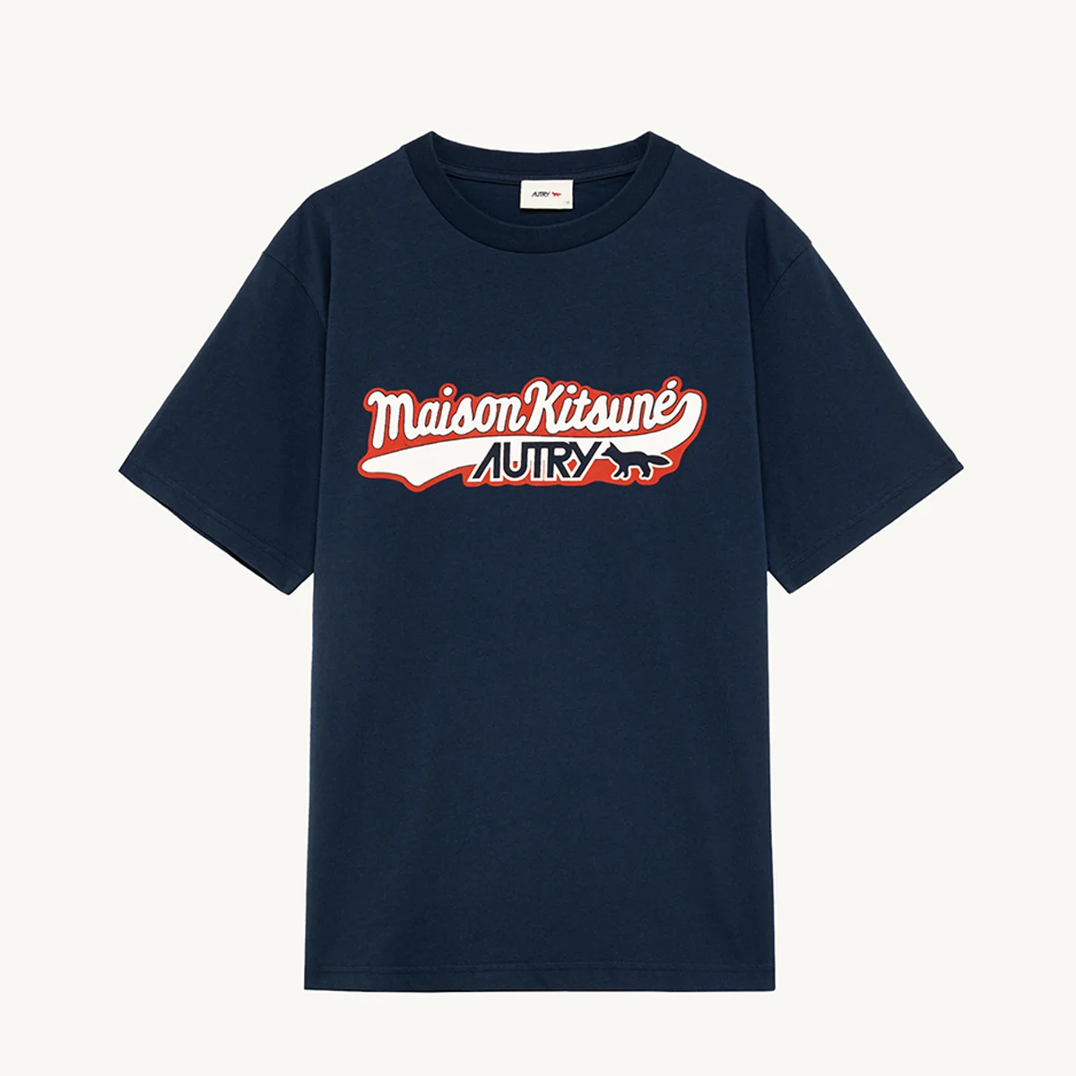 Collaboration entre Autry & Maison Kitsuné Autry et Maison Kitsuné mêlent leurs inspirations et leurs esthétiques pour porter un nouveau regard sur un modèle emblématique. Cette collaboration est un véritable dialogue entre l’héritage sportif américain et le raffinement discret de la mode parisienne contemporaine. Tee Shirt Unisex manches courtes Col rond Col a’ petites cotes Logo Autry “Maison Kitsune’ ” impression et application sur le devant Loose fit 100% Cotton