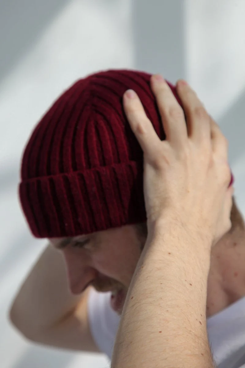Bonnet de pêcheur en laine d’agneau super-douce Half Dozen (rouge bordeaux)