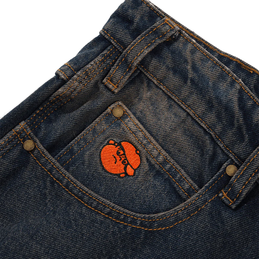 Dark Navy Tint 100% Cotton Logo Brodé poche avant / arrière Ultra Baggy Fit