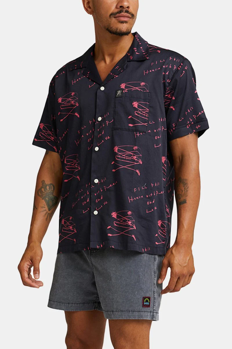 Deus Old House Short à manches (noir / rouge). Les collaborations d’artistes tombent souvent à plat, mais Robert Moore est un maître des textiles ainsi que de la toile, donc pas une surprise que ses créations se traduisent parfaitement en costume portable, comme l’ancienne chemise de maison – un collier de villégiature, une boutonnée à 100% coton La plage, le bar et partout entre les deux.