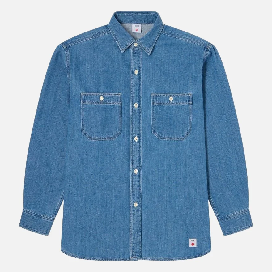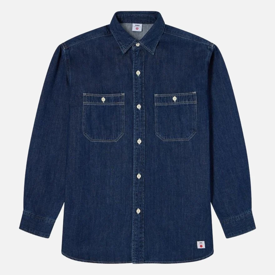 La chemise de travail EDWIN est un t-shirt à manches longues à manches longues, composé à 100 % de coton. Denim 7oz main droite 100 % Coton Coupe régulière 6 boutons sur la fermeture de la patte de boutonnage sur le devant Deux poches poitrine boutonnées Fabriqué au Vietnam